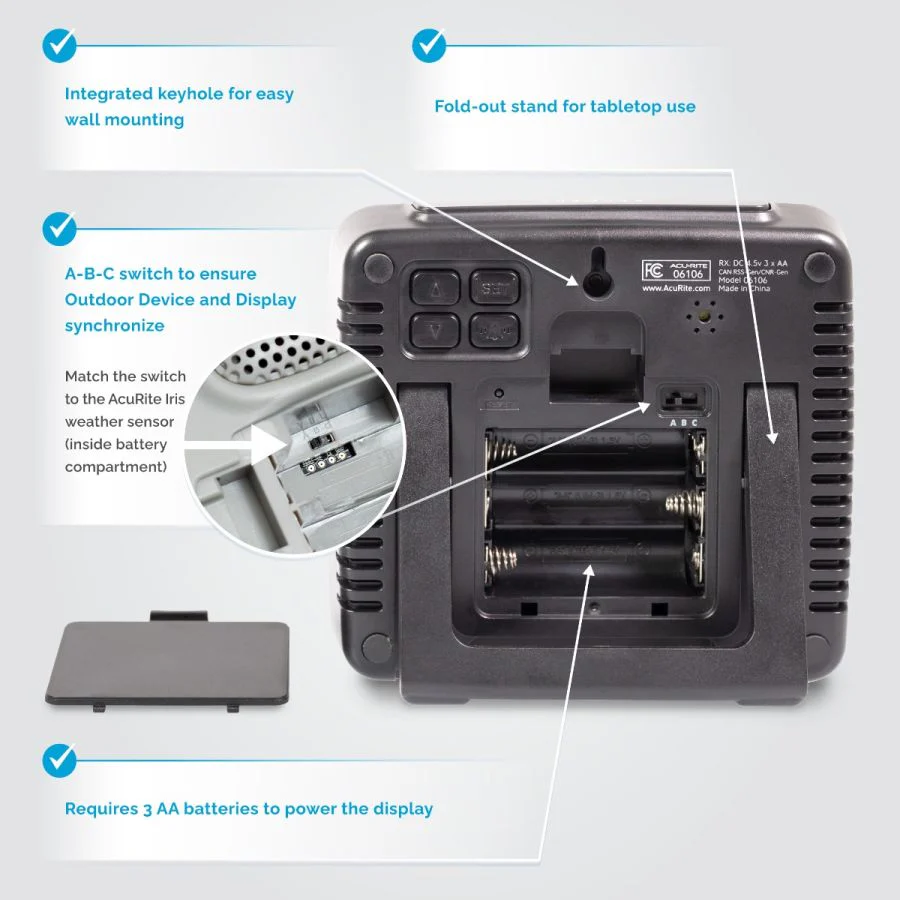 - Completely Wireless Weather Station: Perfect for RV campers or storm chasers, both this display and the AcuRite Iris outdoor sensor (sold separately) are wireless and battery-powered for on-the-go capability